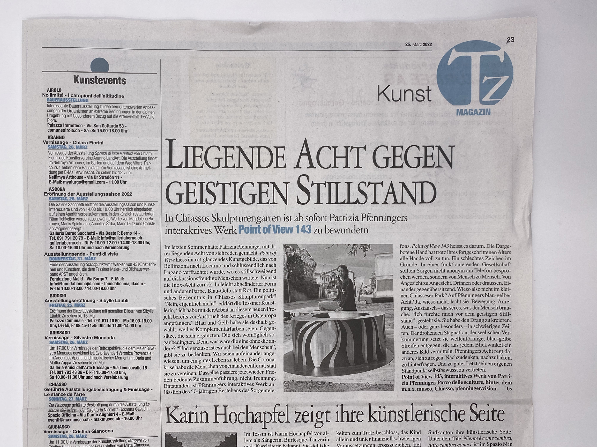 + "LIEGENDE ACHT GEGEN GEISTIGEN STILLSTAND" – Tessiner Zeitung, 25th of March 2022